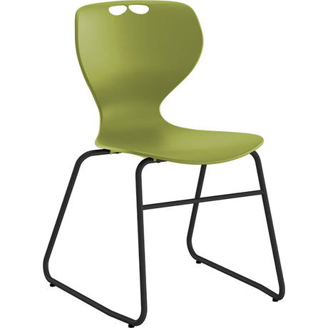 Stol Tarris, oliven sæde med sort hjulkryds og glidesko