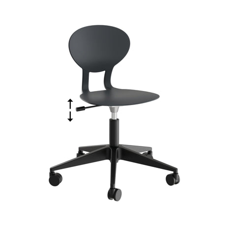 Stol Tarris, gråt sæde med sort hjulkryds og glidesko