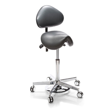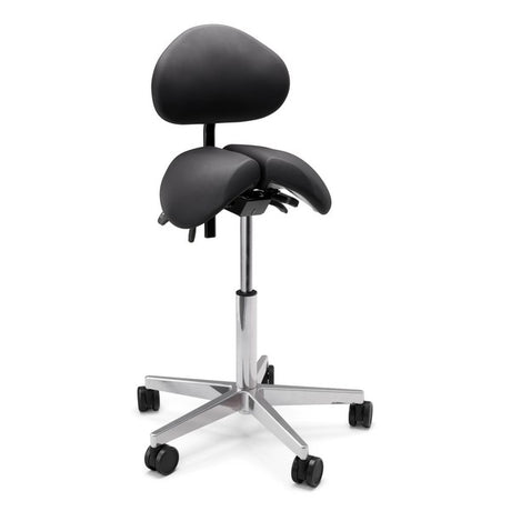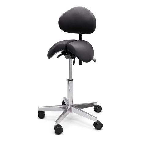 Sadelstol Polo M standard med ryglæn og fodaktivator