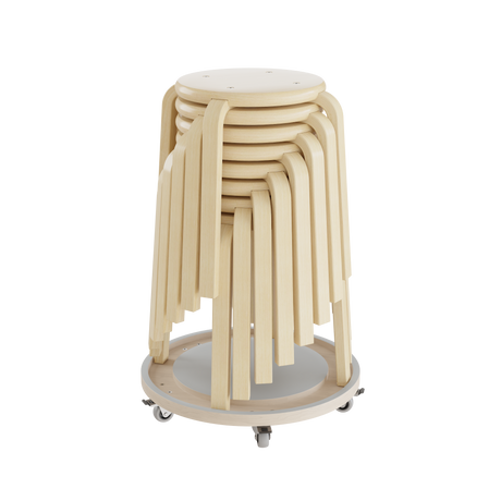 Taburet Donut 7301T, hvidpigmenteret ask, blåt understel