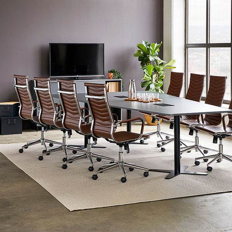 Hæve-sænkbart mødebord DNA, Antracit 2600x1200 mm bådformet, Alugrå understel