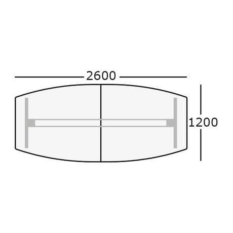 Hæve-sænkbart mødebord DNA, Birk 2600x1200 mm bådformet, Alugrå understel