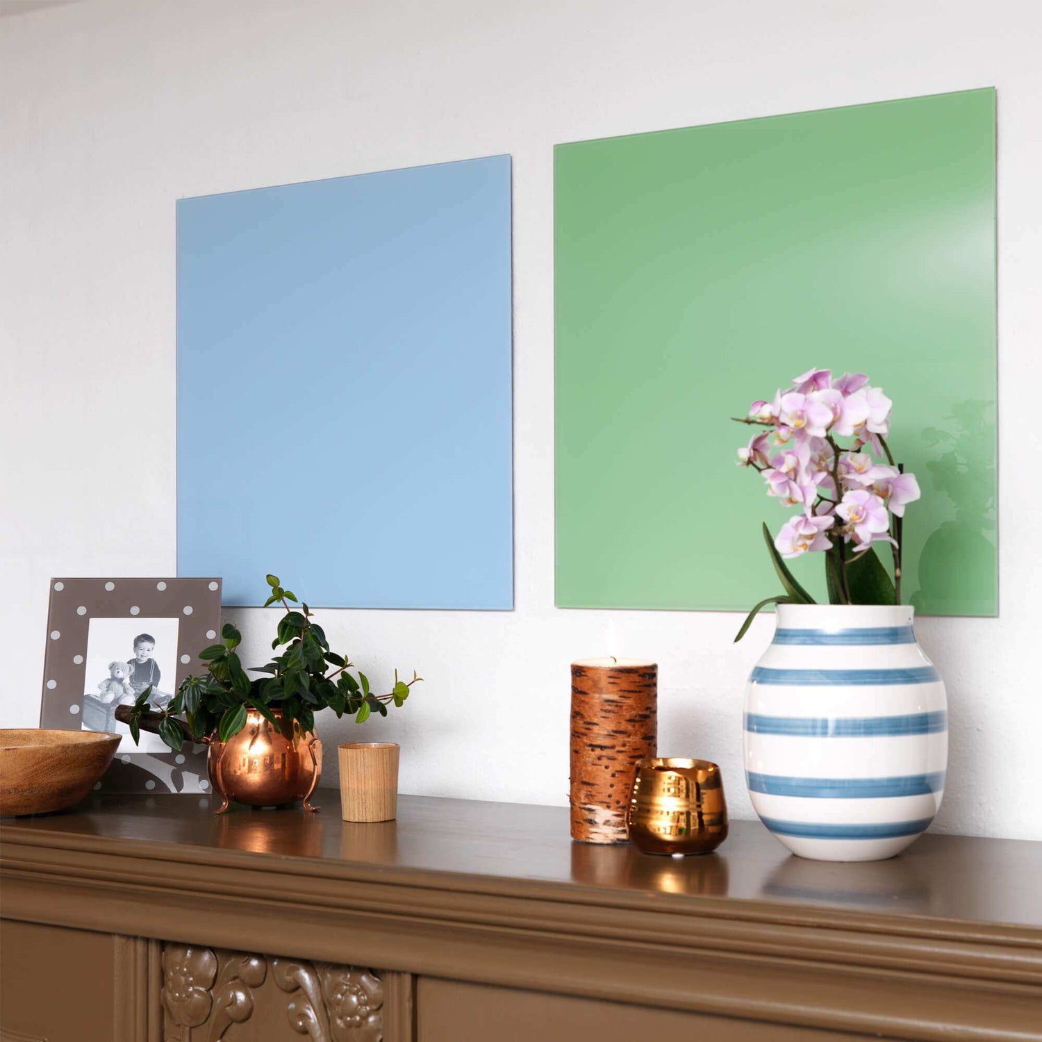 45 x 45 cm. Retro Grøn Magnetisk Glastavle En magnetisk glastavle kan bruges som opslagstavle ved brug af stærke magneter. Glasset giver et elegant udtryk og er samtidig en praktisk vægdekoration. Denne retrogrønne glastavle måler 45 x 45 cm. Bemærk! Kun super stærke magneter kan bruges på glastavlen. Magneter medfølger ikke. Alle NAGA glastavler kræver kraftige neodym magneter, da magneten skal nå igennem glasset til metallaget på bagsiden af tavlen. Skriv på glasset med en kridt marker, eller med en almindelig whiteboard marker. Når teksten er tør, kan den nemt viskes ud igen med en tavlesvamp eller en tør klud. Til grundig rengøring skal du bruge tavlerens eller almindeligt glaspudsemiddel og en blød klud. Det er vigtigt, at du bruger en blød klud for at undgå at ridse glasset. Tavletilbehør kan tilkøbes separat. Ophæng: Der medfølger skruer og rawlplugs samt en boreskabelon. Tavlen har huller i hvert hjørne på bagsiden, så den nemt kan monteres på væggen. Se monteringsvejledning under vejledninger.Gør din hverdag mere organiseret, og tilføj samtidig et retro touch til dit hjem eller kontor med denne magnetiske glastavle. Den er lige så praktisk, som den er stilfuld og vil uden tvivl blive en samtalestarter. Tilføj denne unikke glastavle til din indkøbskurv nu, og oplev selv fordelene ved at holde styr på vigtige noter og to-do-lister på en smuk og smart måde.