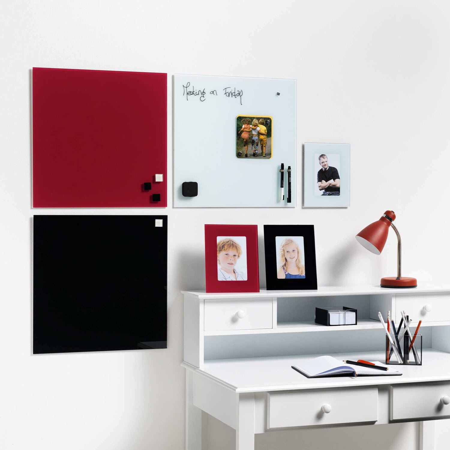 45 x 45 cm. Rød Magnetisk Glastavle er restordret og sendes så snart det er tilbage på lager.
