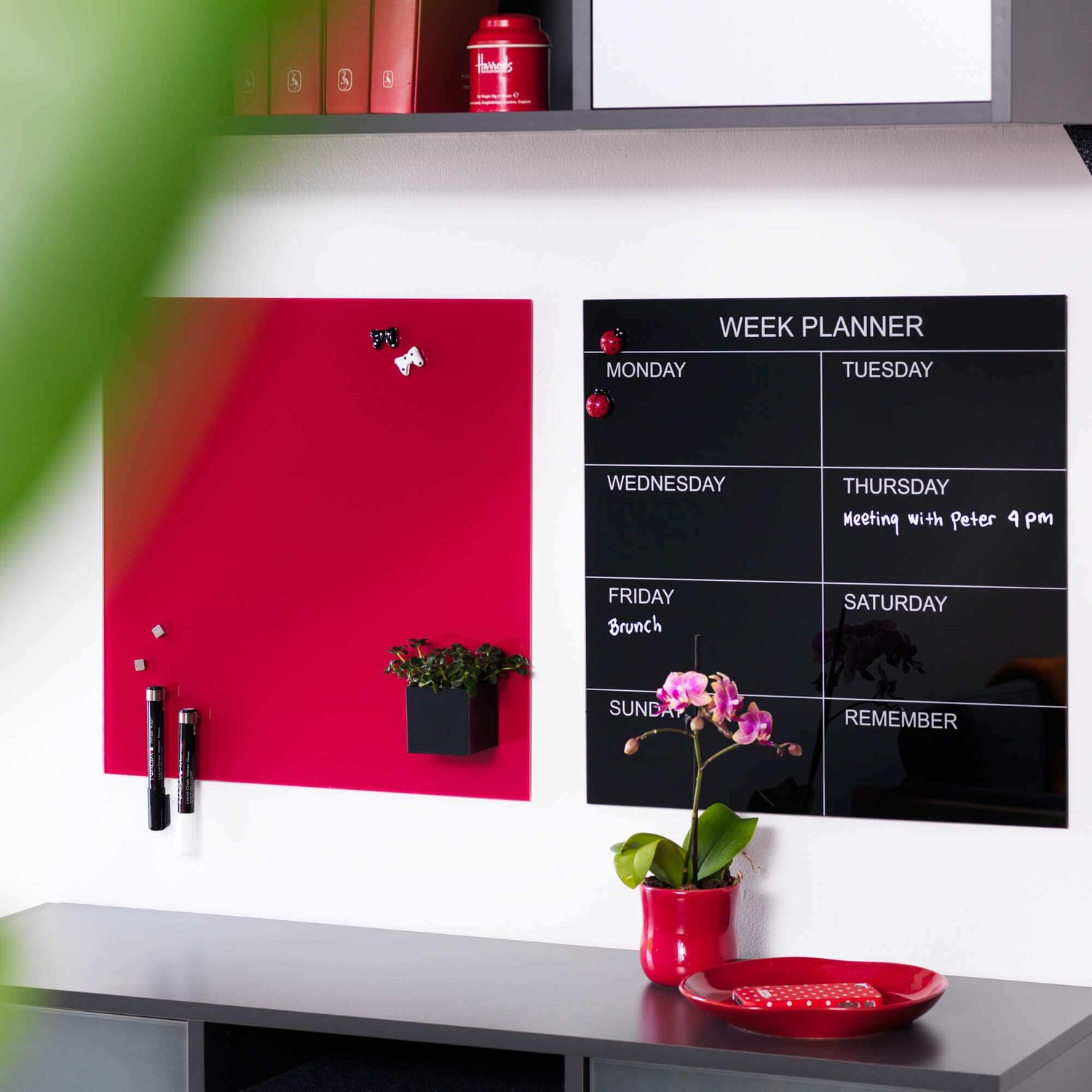 45 x 45 cm. Rød Magnetisk Glastavle