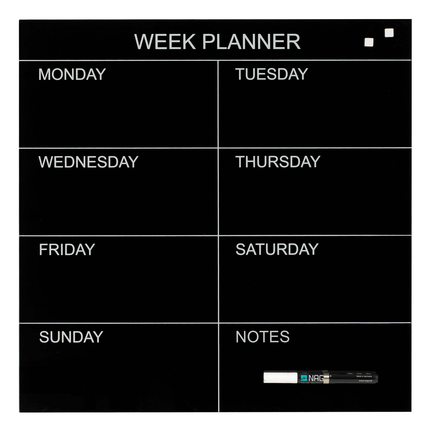 45 x 45 cm. Sort. Glas uge tavle Engelsk