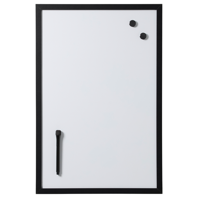 60 x 40 cm. Whiteboard med sort ramme er restordret og sendes så snart det er tilbage på lager.