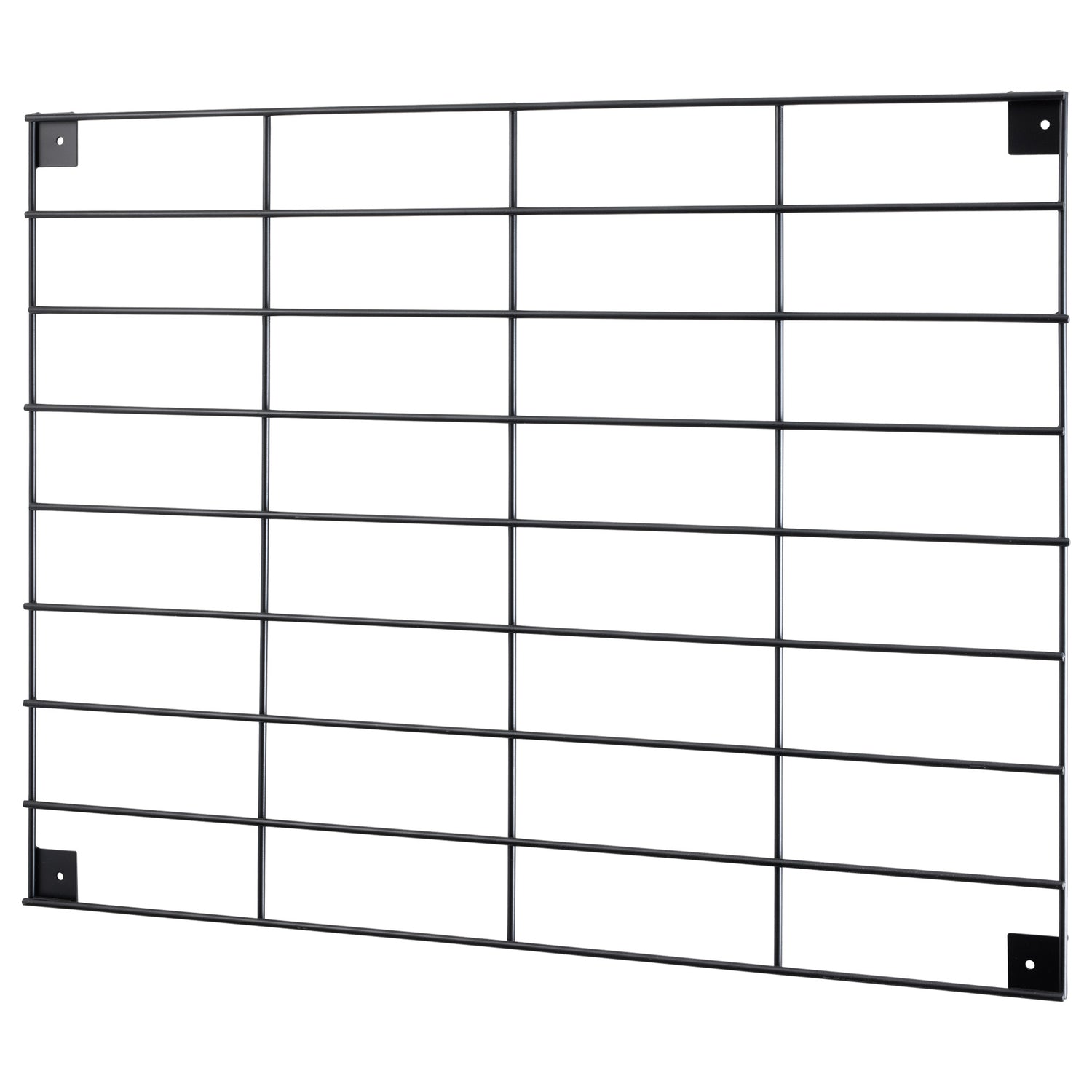 Gitteropslagstavlen er lavet af sort metal med en mat finish.