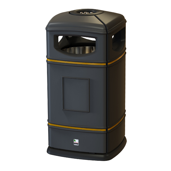 Carl 110L firkantet er en klassisk tønde til udendørs brug. Den er lavet til at stå forskellige steder. Med fire åbninger kan affald smides fra forskellige retninger. Ved at løfte låget får du adgang til den indvendige beholder for nem tømning.
