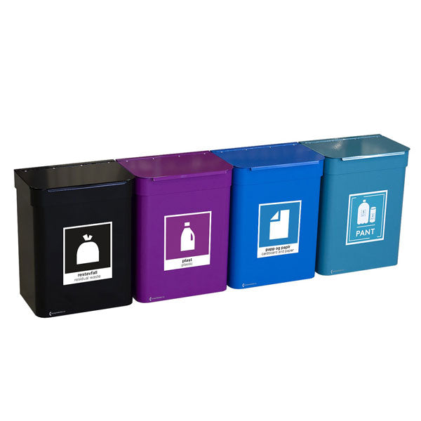 Solide og robuste affaldsbeholdere til vægmontering. Beholderne har et enkelt, tidløst design og er beregnet til indendørs brug. Miljøvenlig pulverlakeret i klassisk grafitgrå metallic.