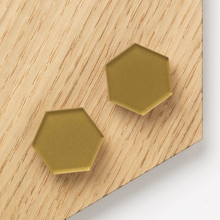 Super Stærke magneter. Hexagonal facon. Akryl i guld. 2,5 x 2,8 cm. 2 stk.Magneten er perfekt til glastavler, finertavler og whiteboardtavler.