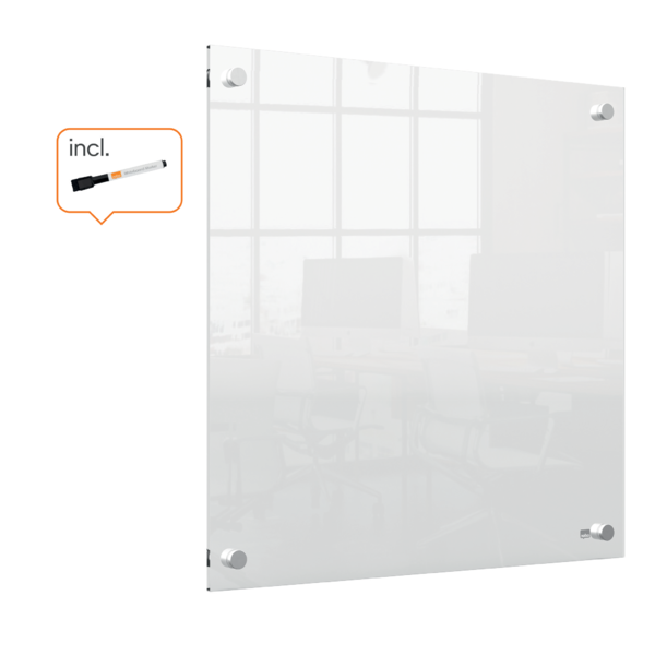 Denne tavle til hjemmekontoret med moderne rammeløst design er perfekt til at lave noter, nedfælde tanker, ideer eller vigtige datoer. Det klare, lille akryl whiteboard er monteret på væggen ved hjælp af stilfuld hjørnemontering, og med det gennemsigtige design passer whiteboardtavlen problemfrit ind i baggrunden, når det ikke er i brug. Den transparente dry-erase overflade af akryl kan let tørres af, så skriv, tør væk og start på ny. Leveres med en whiteboardpen. Størrelse 450x450mm