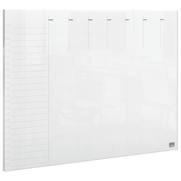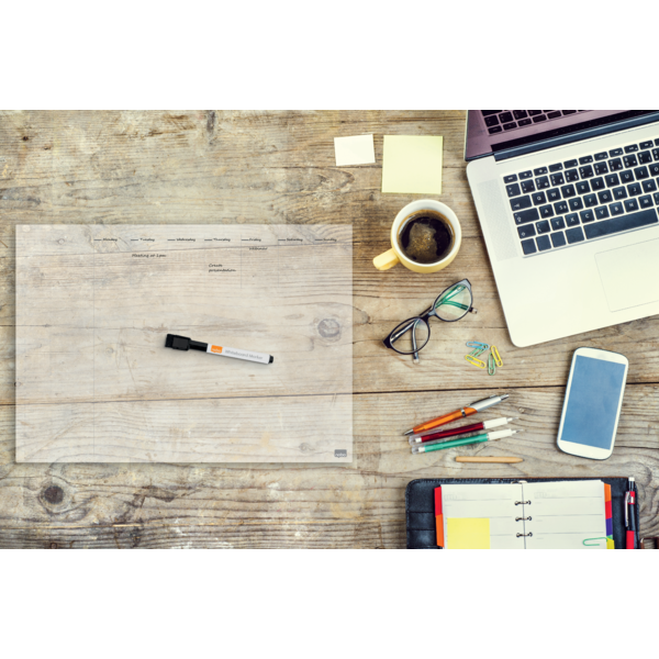 - Det rammeløse gennemsigtige design betyder, at whiteboard ugeplanlæggeren passer problemfrit ind i baggrunden, når den ikke er i brug.