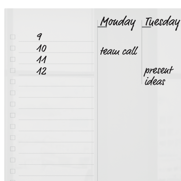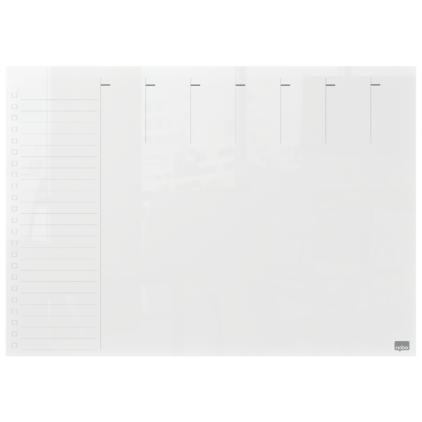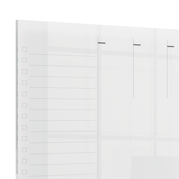 - Whiteboard Ugeplanlægger i akryl med moderne rammeløst design, der simpelthen kan tørres af og bruges igen