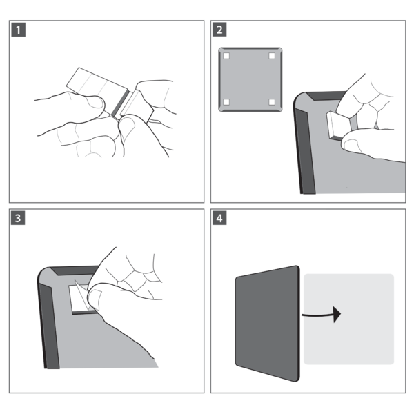 - Leveres med en whiteboardpen og klæbende monteringspuder