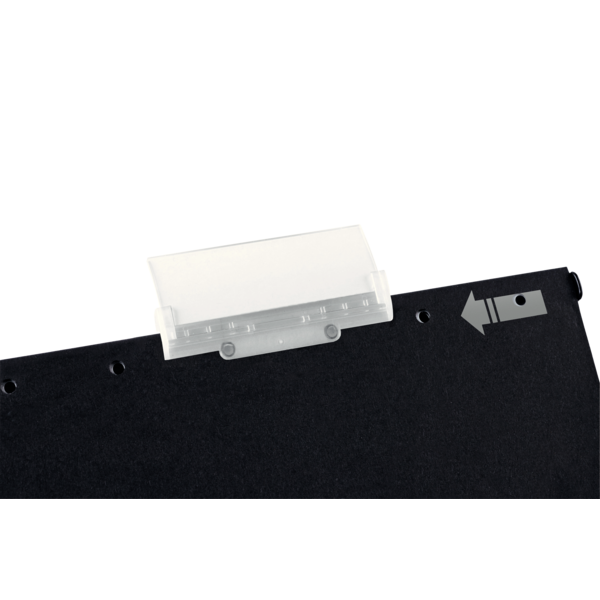 Denne innovative fane er designet til at lette transporten af dine dokumenter. Med en smart indskubningsmekanisme forbliver etiketten synlig, selv når fanen er indskubbet. Den er kompatibel med standard indstiksfaner og kan nemt fastgøres samt skydes ind og ud.