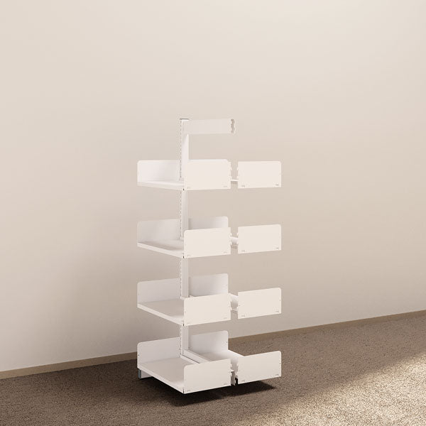Reolen kan opbygges med almindelige stålhylder, tidsskriftshylder eller laminathylder.