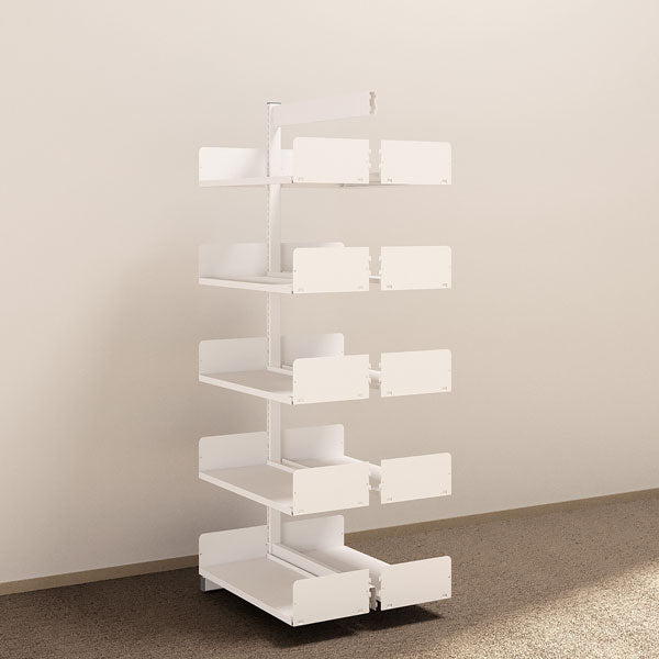 Reolen fås som gulvmodel, ensidet eller dobbeltsidet, samt som væghængt model.