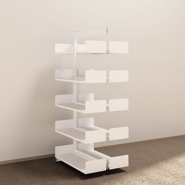 Reolen kan opbygges med almindelige stålhylder, tidsskriftshylder eller laminathylder.