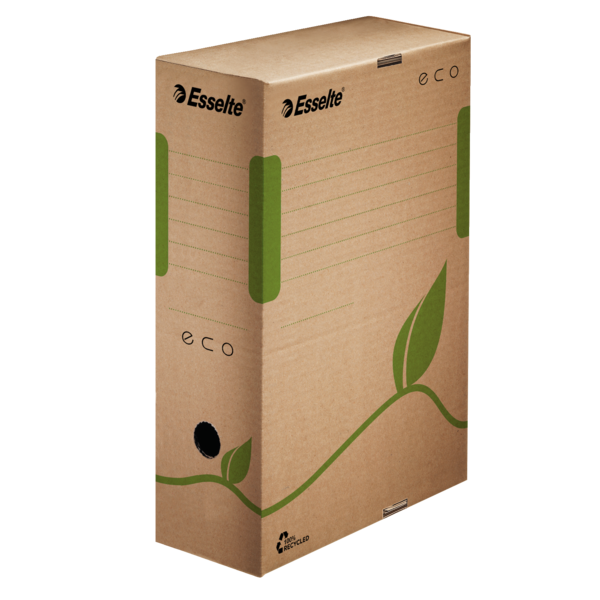 Ved at vælge Eco arkivæsker får du fordel af en omkostningseffektiv løsning til arkivering af dokumenter, og du bidrager samtidigt til at beskytte af vor planet. Dette fuldt funktionelle produkt er fremstillet i 100% recirkuleret bølgepap, herunder 85% 'post-consumer' materiale. Den er 100% recirkulerbar og FSC®-certificeret.