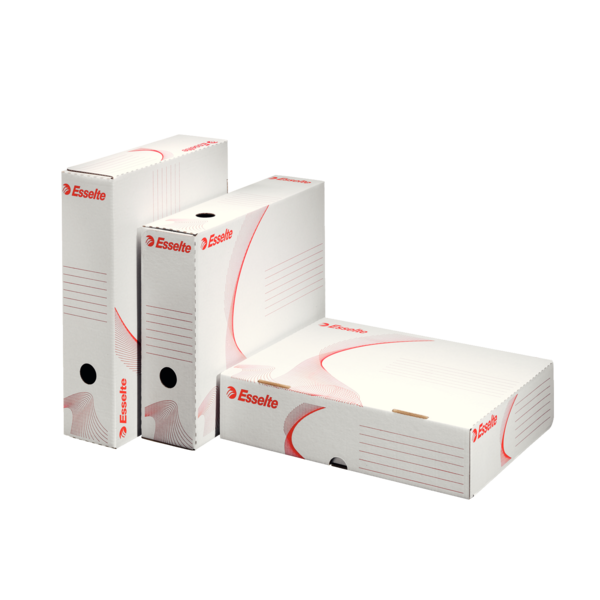 Den gode kvalitet på Esselte Standard bokse er værdsat af mange brugere i mere end 25 år. Tonsvis af dokumenter hvert år pakkes i Esselte Standard arkivbokse på mange forskellige arbejdspladser.