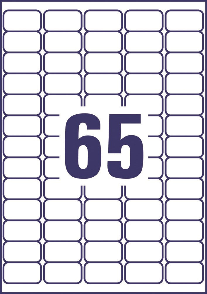 Der er 1.625 etiketter i en pakke fordelt på 65 etiketter pr. ark.