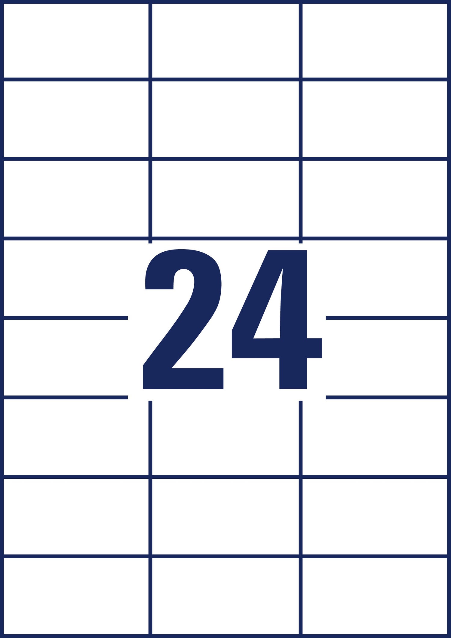 Der er 1560 etiketter i en pakke fordelt på 24 etiketter pr. ark.