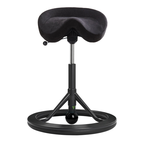 Stolen aktiverer dine rygmuskler og forbedrer holdningen ved, at du balancerer på en central kugle, mens fødderne hviler på en polstret fodplade.