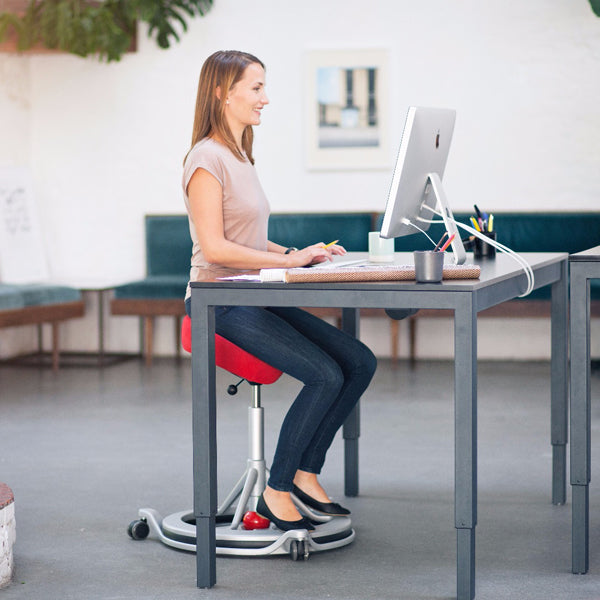 Det er en stol som giver dig noget ekstra! Når du bevæger dig trænes musklerne som støtter rygsøjlen. Bevægelsen for at finde balancen kommer kun fordi du sidder på Backapp. Bestil hjulunderstel - fås i 2 forskellige farver -hvis du ønsker mere fleksibilitet på arbejdspladsen.