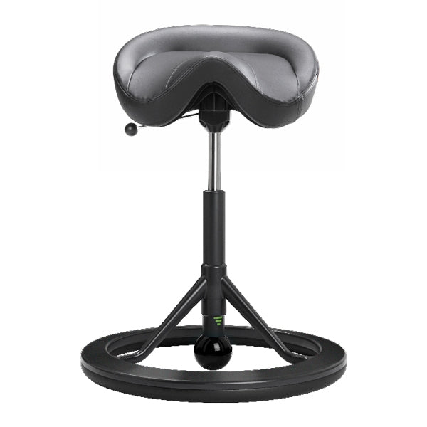 Stolen har en central kugle som skaber bevægelse når du balancerer, hvilket træner musklerne der støtter rygsøjlen.