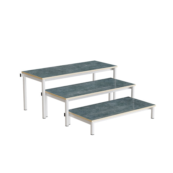 Bænk Idol, trappe 800, mørkgrå linoleum, hvidt stel, 3 sektioner