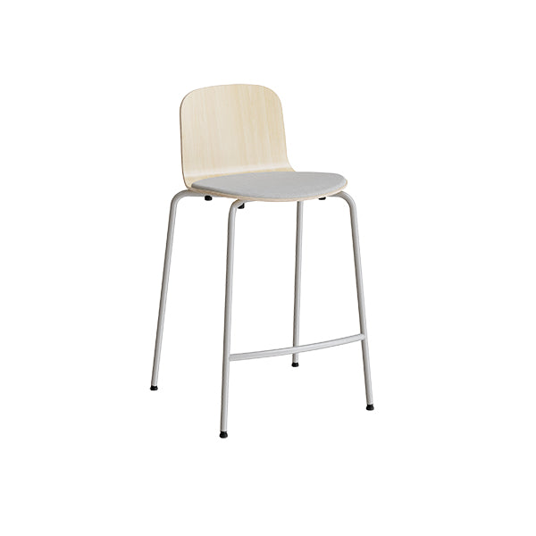 Barstol ADD Birk laminat, sæde i sølvfarvet tekstil, alugrå ben