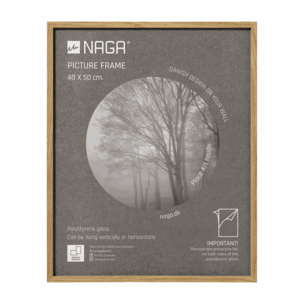 40x50 ramme i massivt egetræ Moderne ramme med plexiglas udført i massivt FSC®-certificeret egetræ. Den flotte ramme passer til et billede på 40x50 cm. Trærammen måler 1,2 cm i bredden og 2,2 cm i dybden og giver et stilfuldt udtryk. Den fine ramme har metalophæng bagpå, så du nemt kan hænge den op. Rammen er udført så du både kan hænge den vertikalt og horisontalt, på den måde kan du skabe den helt rette billedvæg. En tidløs ramme, som du kan få glæde af i mange år. Indram billeder, din egen eller andres kunst og skab et flot design på dine vægge.Med sin høje kvalitet og tidløse design, passer denne ramme perfekt ind i enhver indretning og vil uden tvivl give dine billeder et flot, sofistikeret udtryk. Gør noget særligt ved dine- eller andres kreative kreationer og bestil din egeramme allerede i dag. Din væg fortjener den bedste udsmykning.
