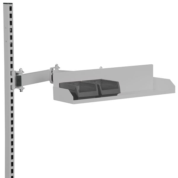 Kassehylden monteres på den medfølgende leddelte arme (inkluderet), noget som giver en meget fleksibel, ergonomisk og effektiv arbejdsplads. I udstrakt position er selve armen 570 mm inkluderet søjlefastgørelse, således at nødvendig udstyr vil være tilgængelig i umiddelbar nærhed til arbejdspladsen.