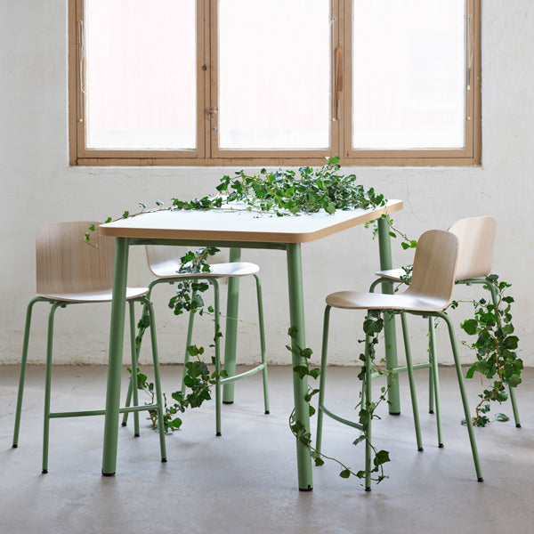 Bord Add 590, 1400x700 mm højde 720 mm med hvidpigmenteret eg, grønt stel