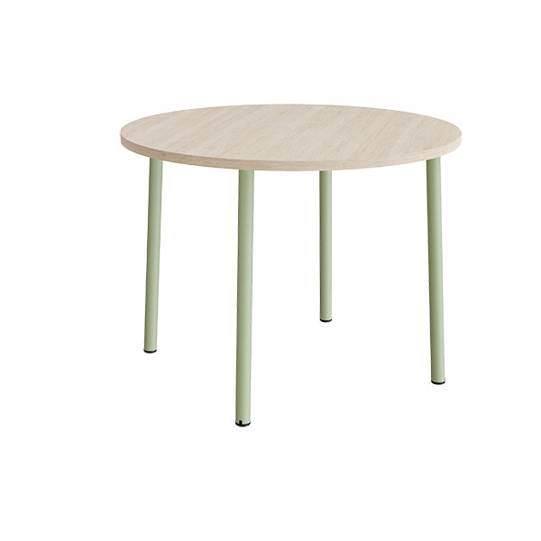 Bord Add 590, Ø1200 mm, højde 900 mm, hvidpigmenteret eg laminat på grønt stel