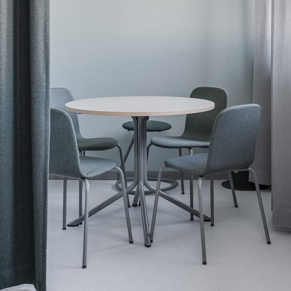 Bord Atlas 1133 Ø800x720mm, Hvidpigmenteret eg med gråt understel