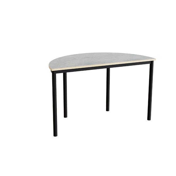 Bordpladen har en lys grå linoleumsoverflade, og stellet er sort.