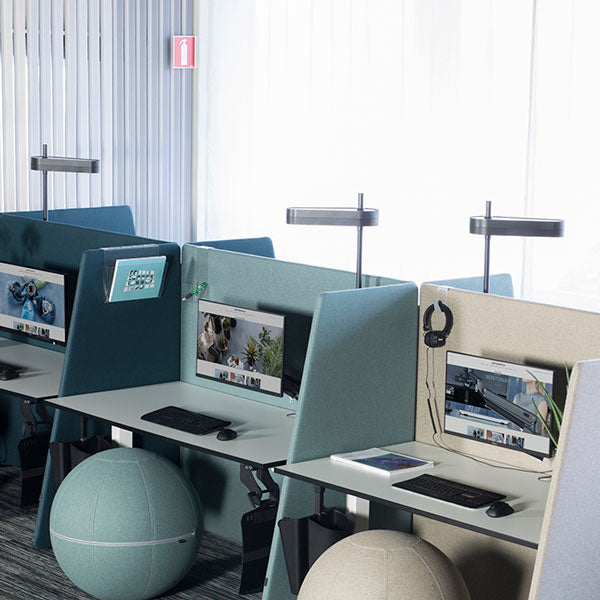 The Lightning LED bordlampe i sort, med et meget stilrent design og korrekt ergonomisk belysning for kontoret. The Lightning et udmærket valg for skrivebordsbelysning! Bordlampen har en uplight og en downlight, med separate touchknapper for justering af lysstyrke i tre nivauer. Lampens lyskilde er LED med lysdioder som har meget lang livstid. Lysstyrke er 30+30W LED som giver 4400L. The Lightning bordlampe kan monteres direkte i bordpladen gennem et Ø25mm hul, eller i kombination med Slim el-udtag for bord. Totalhøjde er 1047mm over bordpladen.