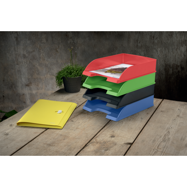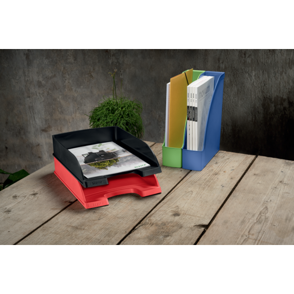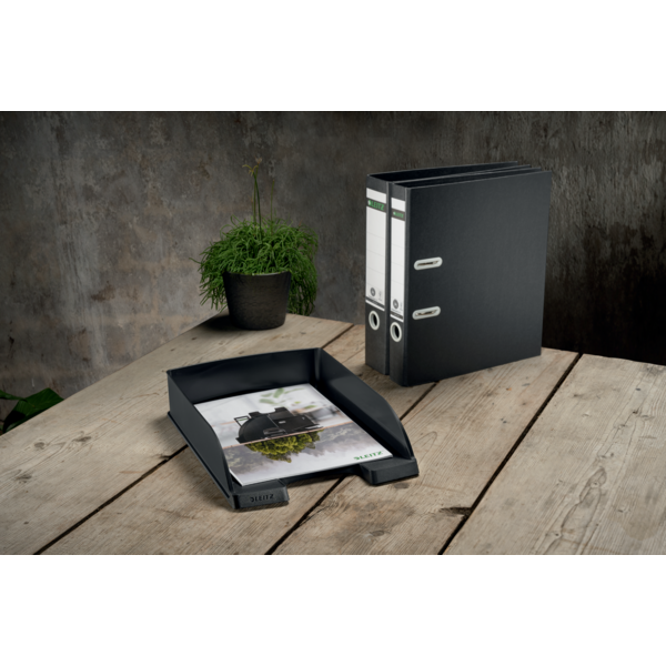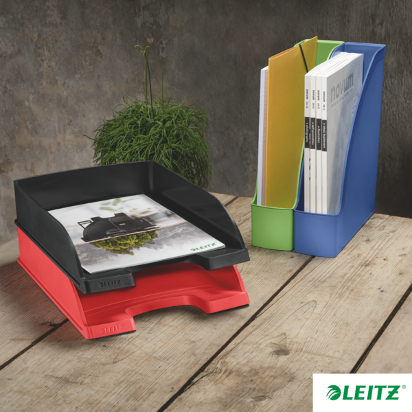 Denne iøjnefaldende Brevbakke fra Leitz er perfekt til organisering af dine dokumenter. Fremstillet af mindst 90% post-consumer recirkuleret plast, bærer den miljøcertificeringen fra Blå Engel og er 100% recirkulerbar.