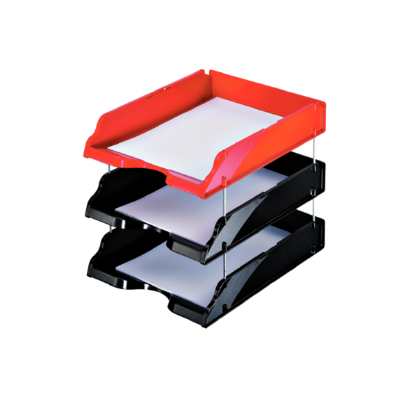 Transit Brevbakke er en robust og funktionel løsning til organisering af dine dokumenter. Designet til A4-størrelse, kan denne brevbakke stables lodret eller forskudt, hvilket gør den ideel til fleksibel opbevaring på kontoret.