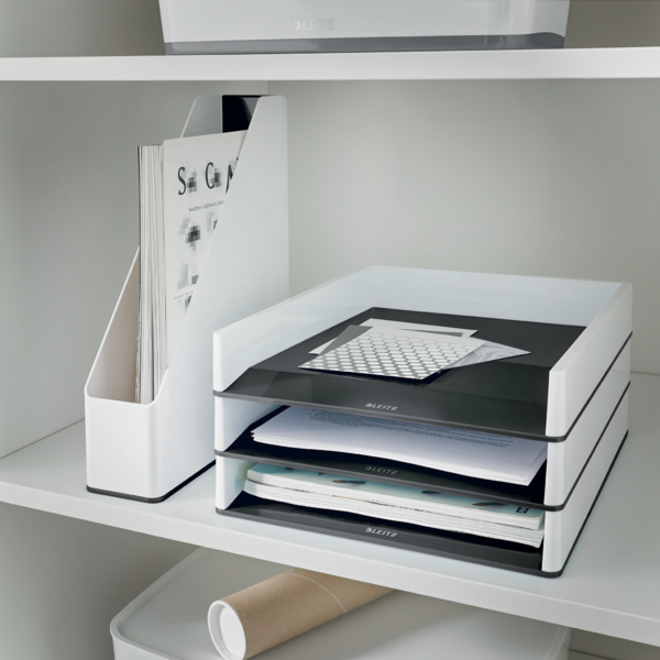 - Enkel organisering af dokumenter, magasiner og foldere takket være lodret stabling
