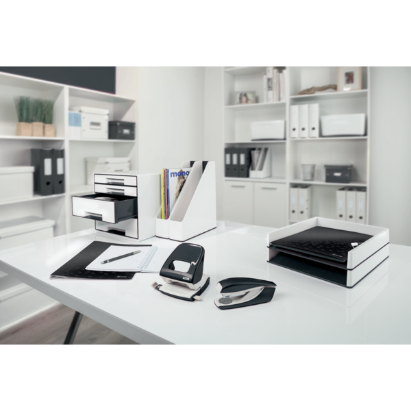 Giv dit skrivebord et strejf af elegance med Leitz brevbakke fra den prisvindende WOW-serie. Denne iøjnefaldende brevbakke i premium kvalitet kombinerer stilfulde dobbelt farver med en skinnende finish, hvilket gør den til et perfekt match til både hjemmet og kontoret.