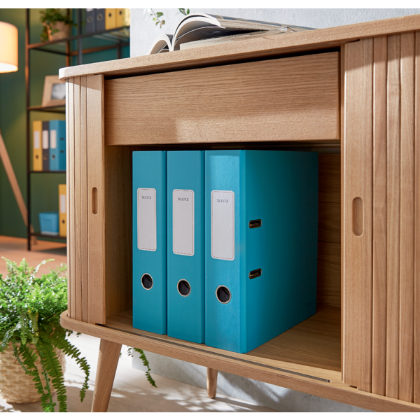 Opgrader dit arbejdsområde med Leitz Cosy Brevordner, der forener minimalistisk design med funktionalitet. Den unikke, patenterede 180° mekanisme sikrer 50% større åbning og 20% hurtigere arkivering, hvilket gør det nemt at holde styr på op til 600 A4-dokumenter.