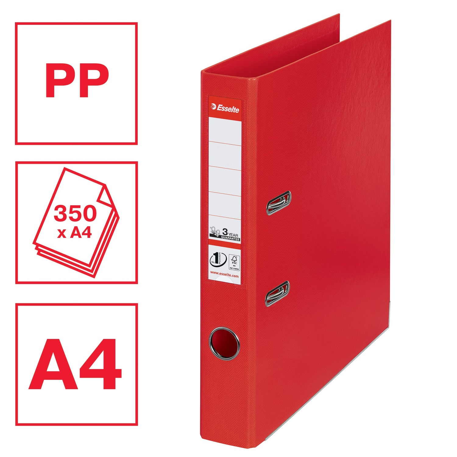 Brevordner No1 Power PP A4 50mm rød