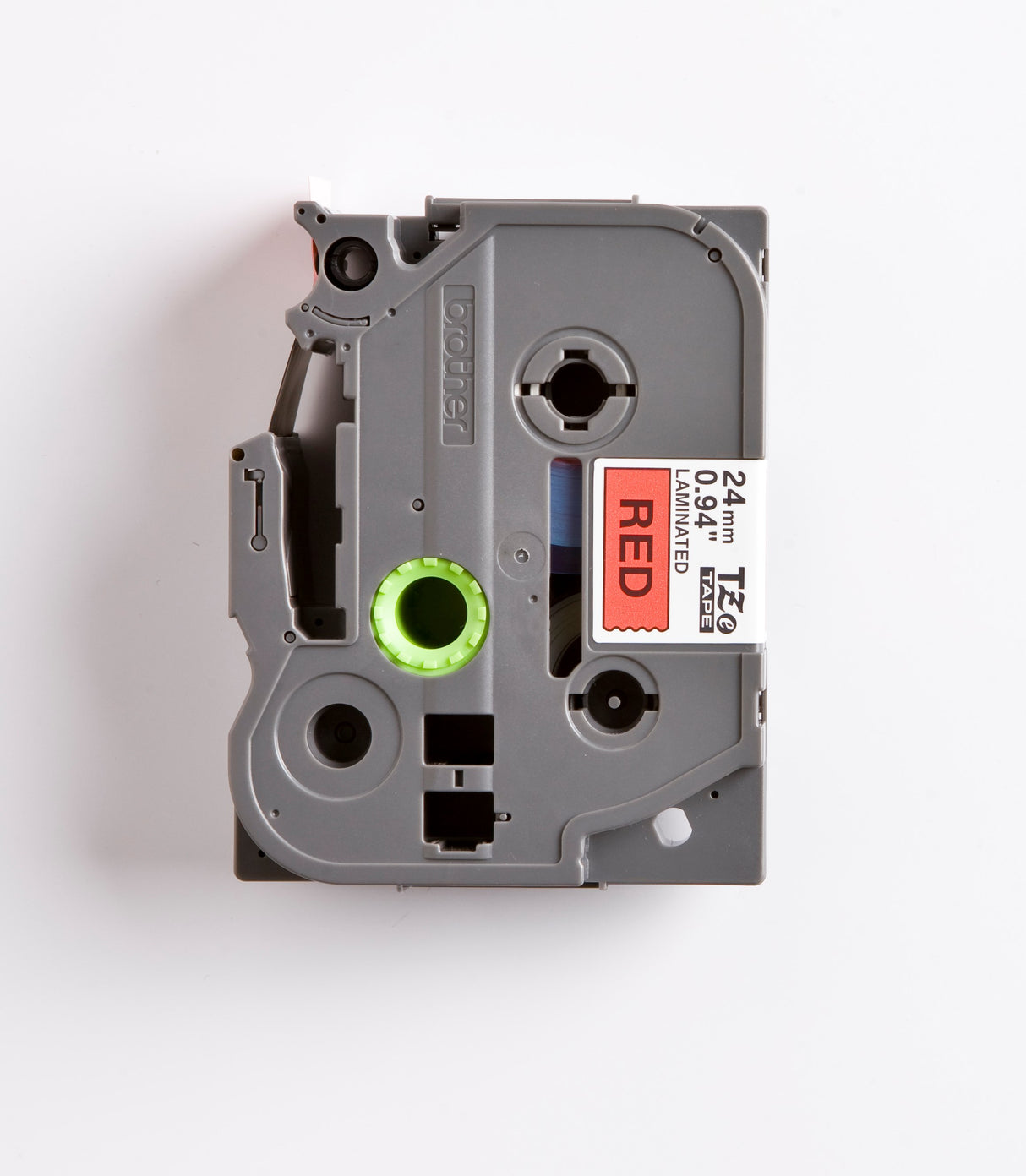 Brother har patent på sine unikke, laminerede P-touch labels, som er skabt til brug i selv de hårdeste miljøer. De tåler kulde og varme, vand, syrer, olie, hårdt fysisk slid, sollys m.m. P-touch labels er det eneste sikre valg, hvis din opmærkning skal være læsbar under alle forhold. Brothers laminerede tape består af seks lag, som danner en tynd, meget robust label. Teksten printes rent faktisk på indersiden af lamineringen hvilket gør, at disse labels er de eneste labels, hvor teksten ikke kan slides af! Bredde: 24 mm Farve: Sort tekst på rød tape