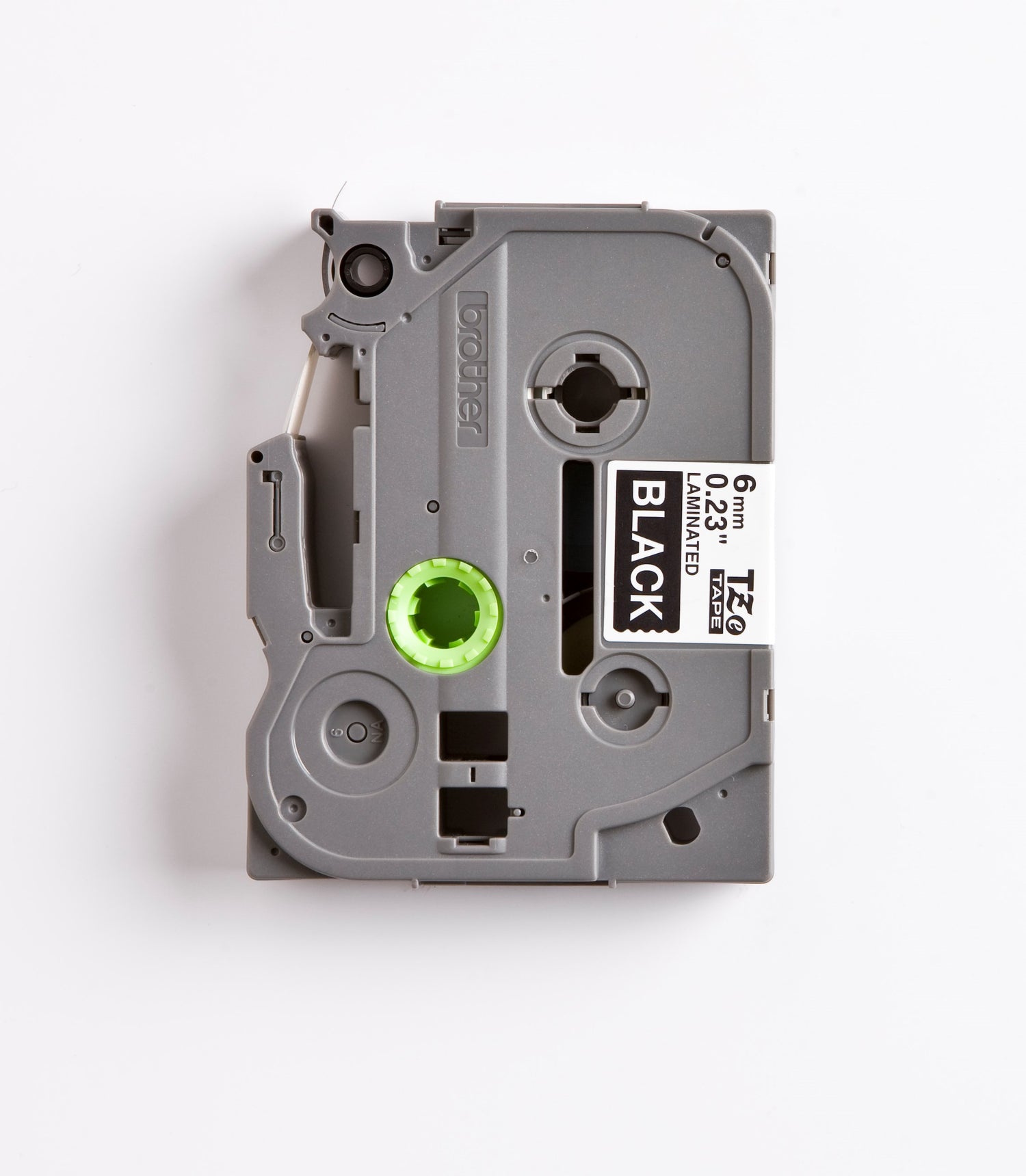 Brother har patent på sine unikke, laminerede P-touch labels, som er skabt til brug i selv de hårdeste miljøer. De tåler kulde og varme, vand, syrer, olie, hårdt fysisk slid, sollys m.m. P-touch labels er det eneste sikre valg, hvis din opmærkning skal være læsbar under alle forhold. Brothers laminerede tape består af seks lag, som danner en tynd, meget robust label. Teksten printes rent faktisk på indersiden af lamineringen hvilket gør, at disse labels er de eneste labels, hvor teksten ikke kan slides af! Bredde: 6 mm Farve: Hvid tekst på sort tape