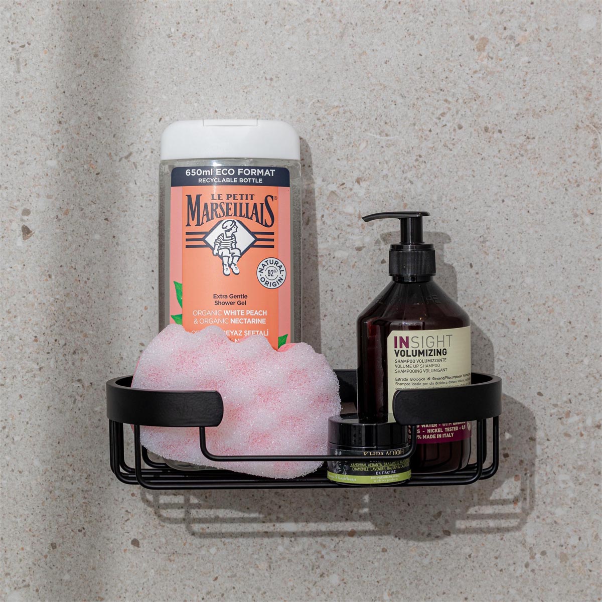 Hold nemt styr på dine badeprodukter med denne minimalistiske brusehylde i sortlakeret aluminium. Det er en praktisk løsning til opbevaring af shampoo og sæbe i brusekabinen. Den matte sorte finish tilføjer et tidløst og moderne udtryk. Brusehylden kan nemt monteres på væggen med eksempelvis selvklæbende kroge – helt uden at skulle bore huller i fliserne. Monteringsudstyr medfølger ikke, hvilket giver dig friheden til at vælge den løsning, der passer bedst til dine behov. Materialet gør hylden velegnet til brug i fugtige miljøer som badeværelset, og den åbne bund sikrer effektiv afdrypning.