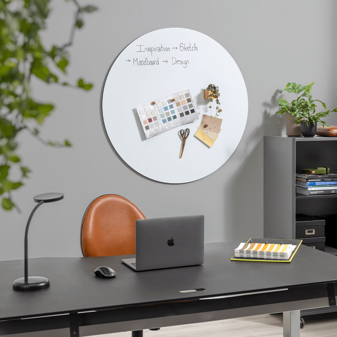 Rammeløs, magnetisk whiteboard. Dia 100 cm. med et moderne twist til den traditionelle whiteboard. Den runde form giver et stilfuld look til hjemmet, mødelokalet, klasselokalet eller kontoret. Kan med fordel kombineres med vores andre cirkel tavler for at skabe en unik tavlevæg.