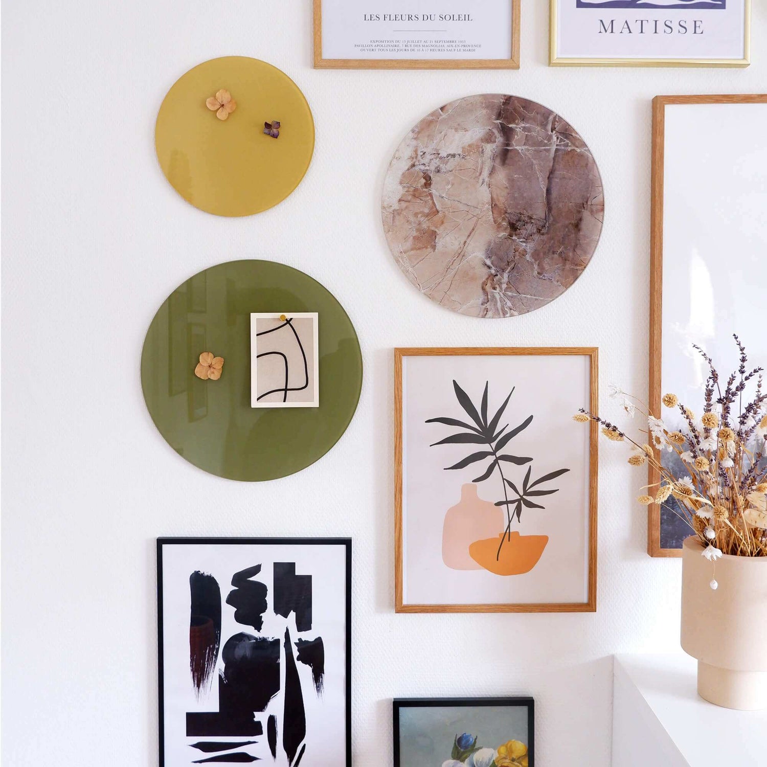 NAGA nord Magnetisk Cirkel tavle dia 25 cm. Sahara glas.Sæt ting på tavlen med Super Stærke magneter.